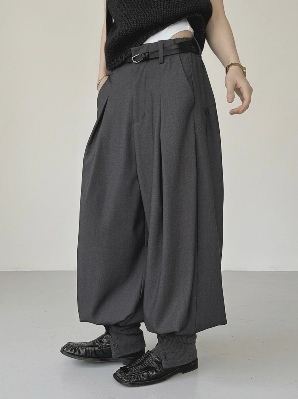 Stylish Deep Harem Capri Pants with Unique Overlay Design